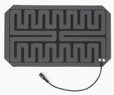 The Auk Heater is a flexible 12 volt heater with a barrel jack connector.